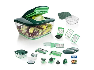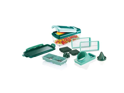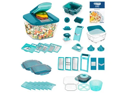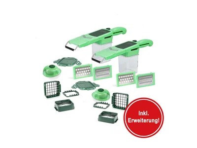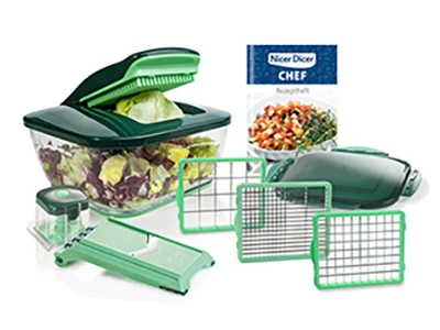 Entdecke das Nicer Dicer Quick Professional Set - Das ideale Schneidsystem für deine Küche inklusive eines 24-teiligen Gratis-Sets.